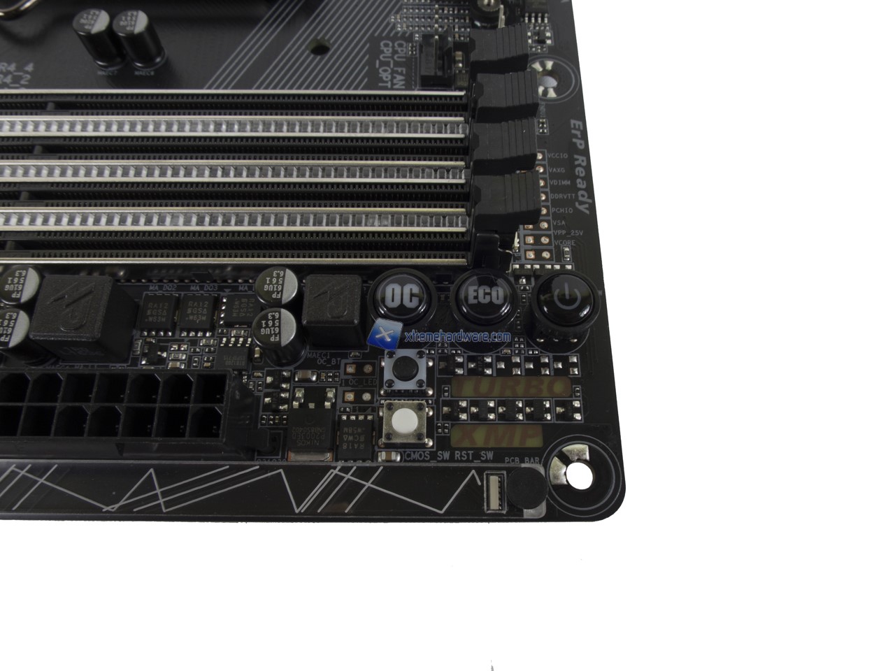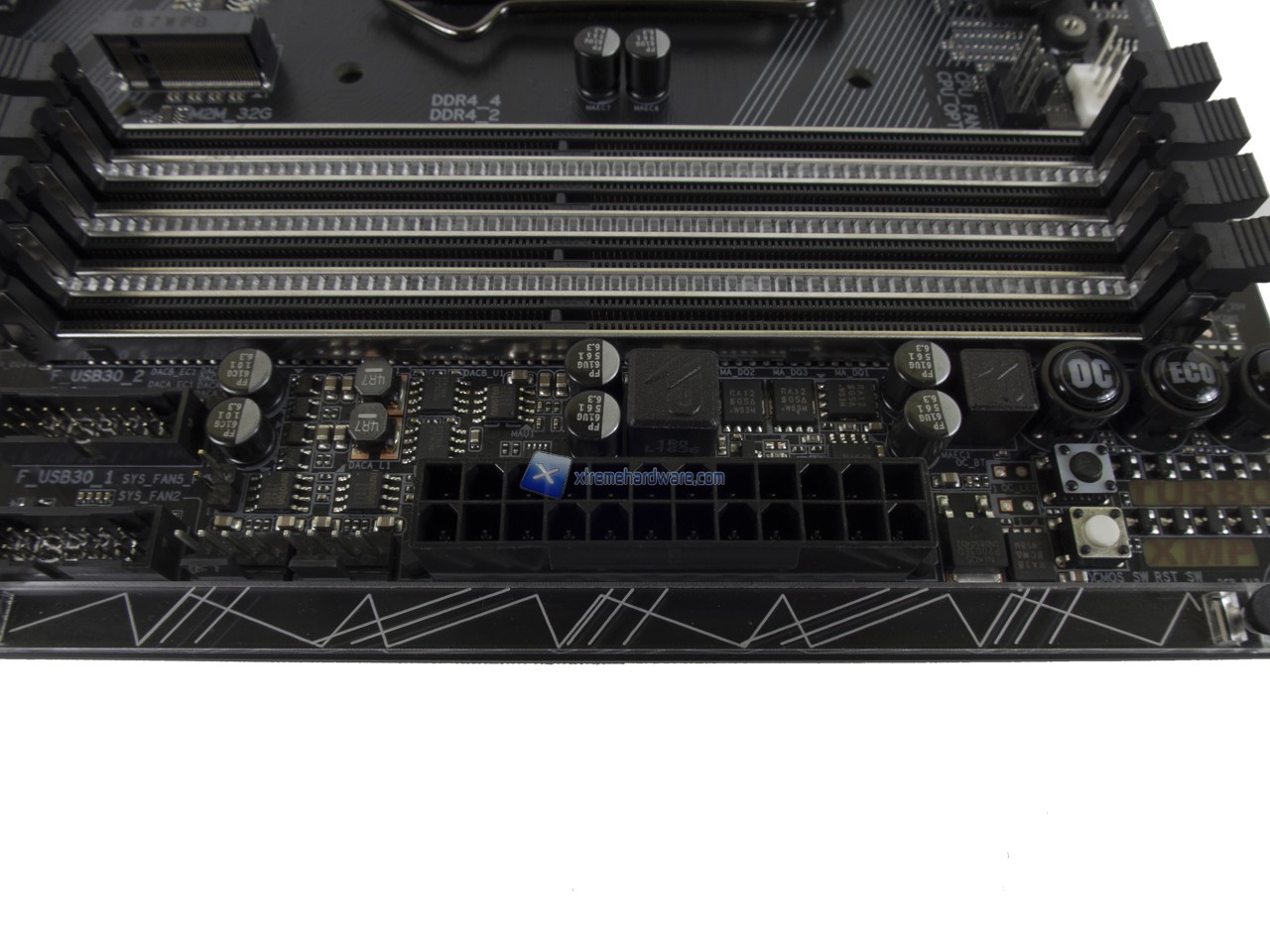 In tale zona possiamo osservare anche i tasti di accensione e per i profili ECO o OC. Non mancano inoltre un tasto per il CLEAR CMOS e uno per il profilo XMP.