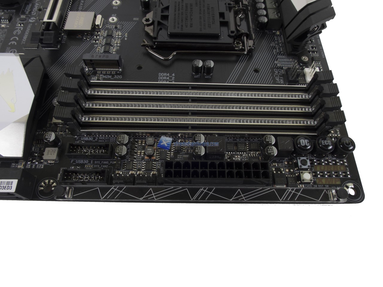 L’alimentazione della GIGABYTE AORUS Z270X-Gaming 7 è affidata ad un connettore 8 Pin EPS nell’angolo superiore sinistro.