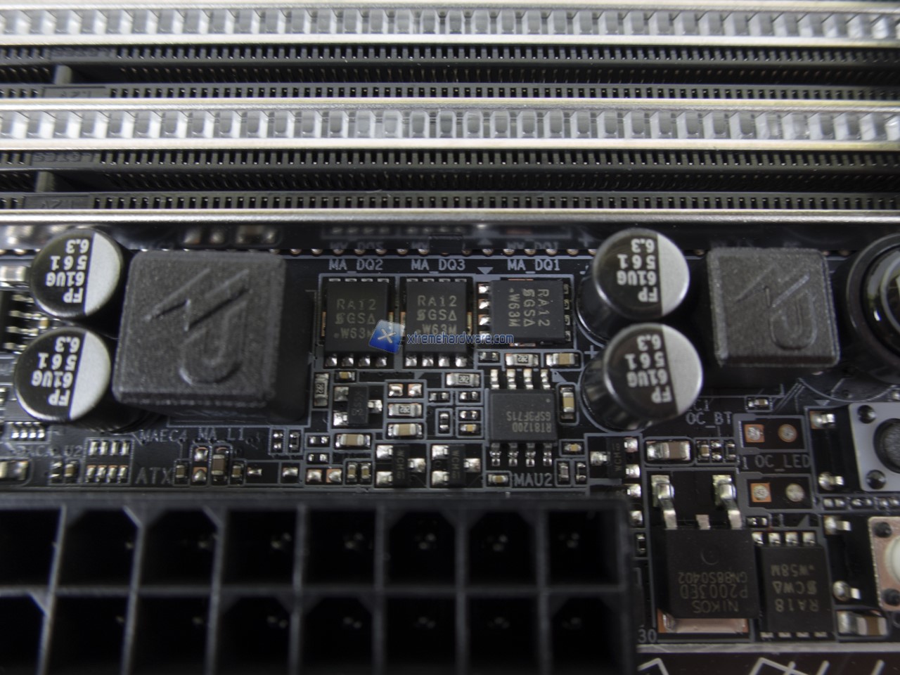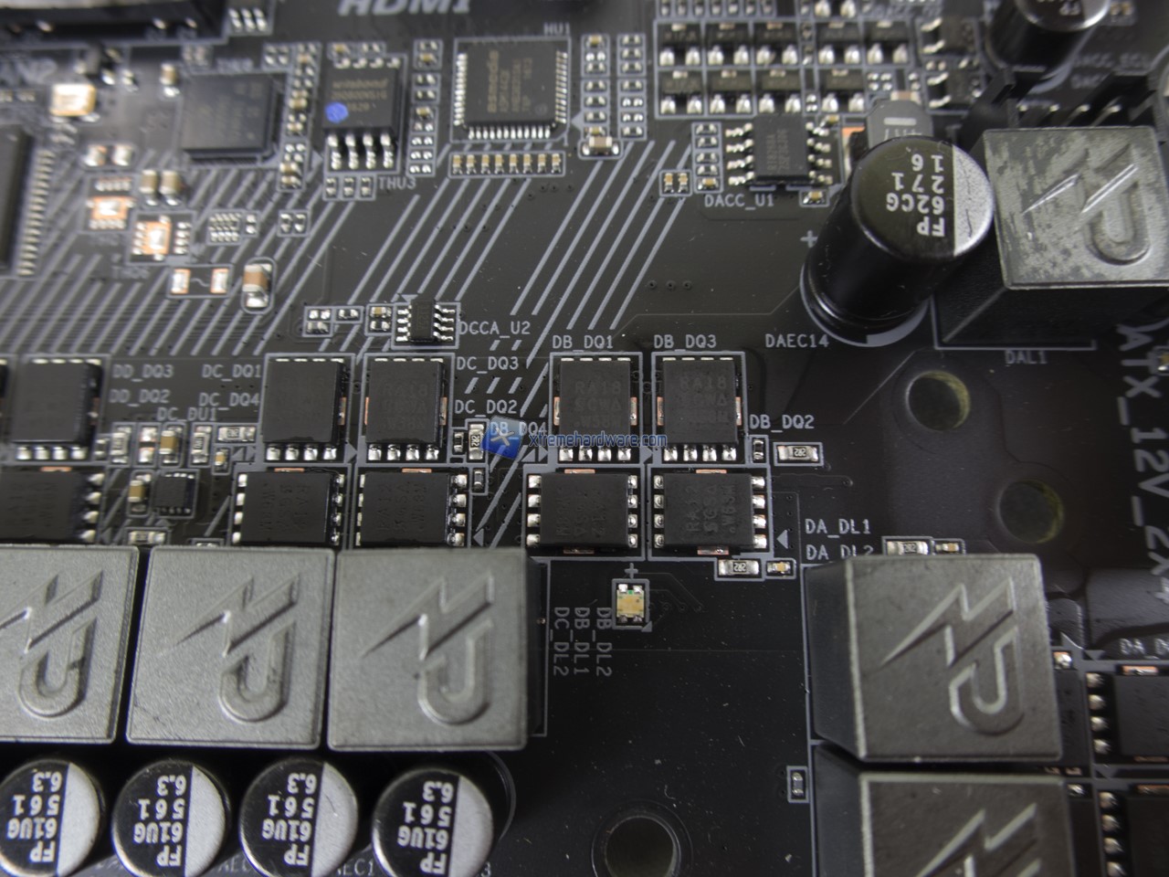 Per gli slot RAM abbiamo una singola fase con sempre MOSFET Vishay SiRA12 come da immagine seguente.