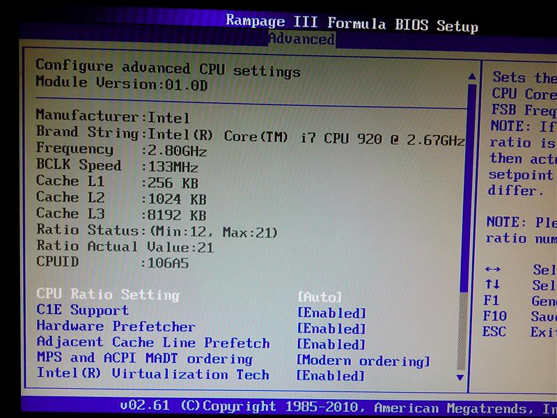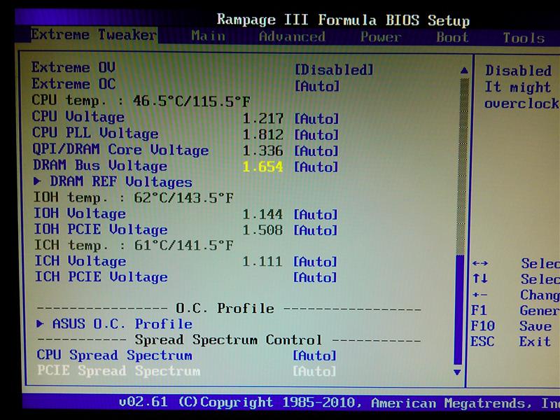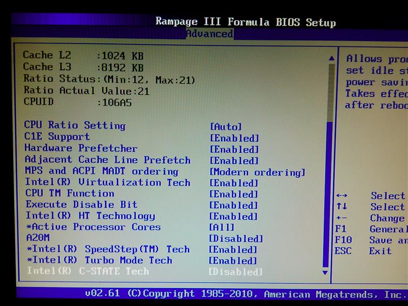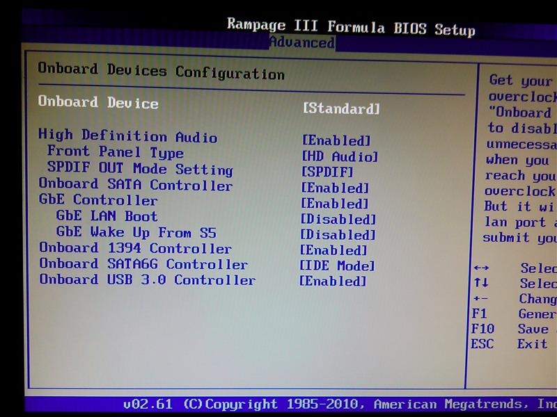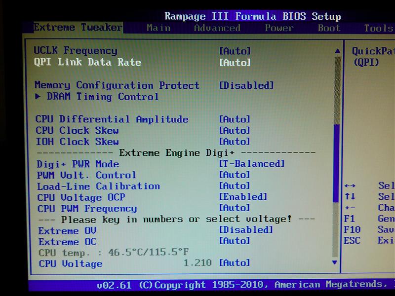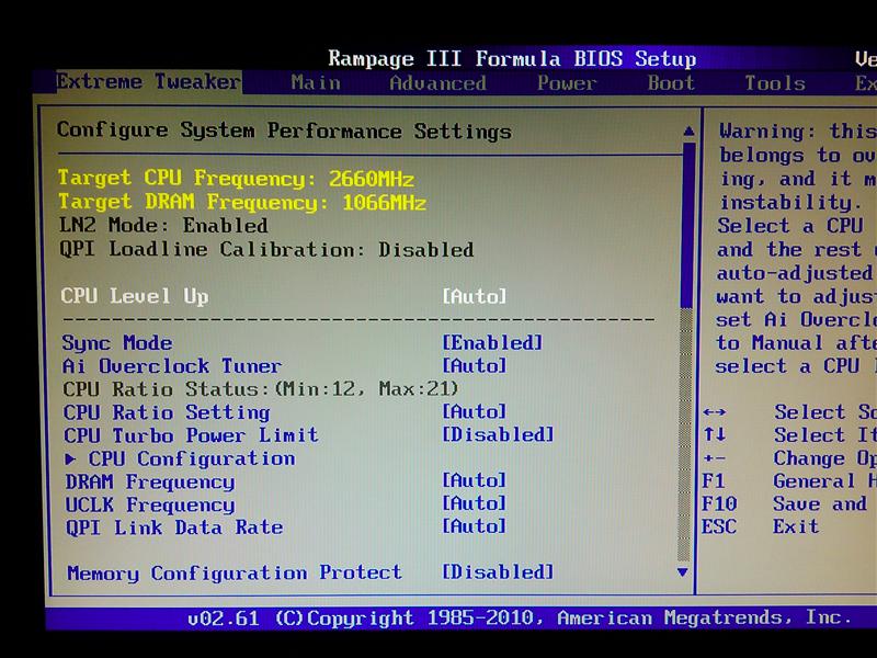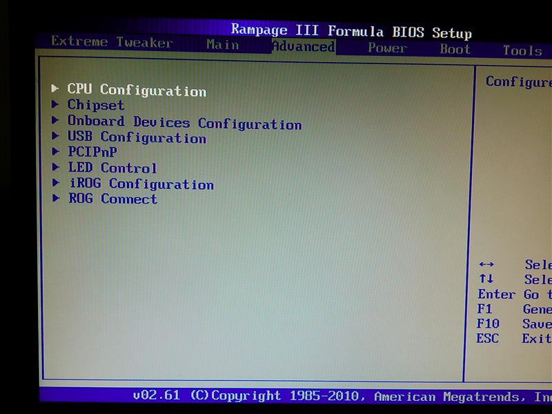 Il Bios fornito in dotazione alla Asus Rampage III Formula è prodotto da AMI (American Megatrends, Inc.), comune alla maggior parte delle schede madri di Asus. La caratteristica principale è la suddivisione in sezioni, infatti ne possiamo osservare ben 7: