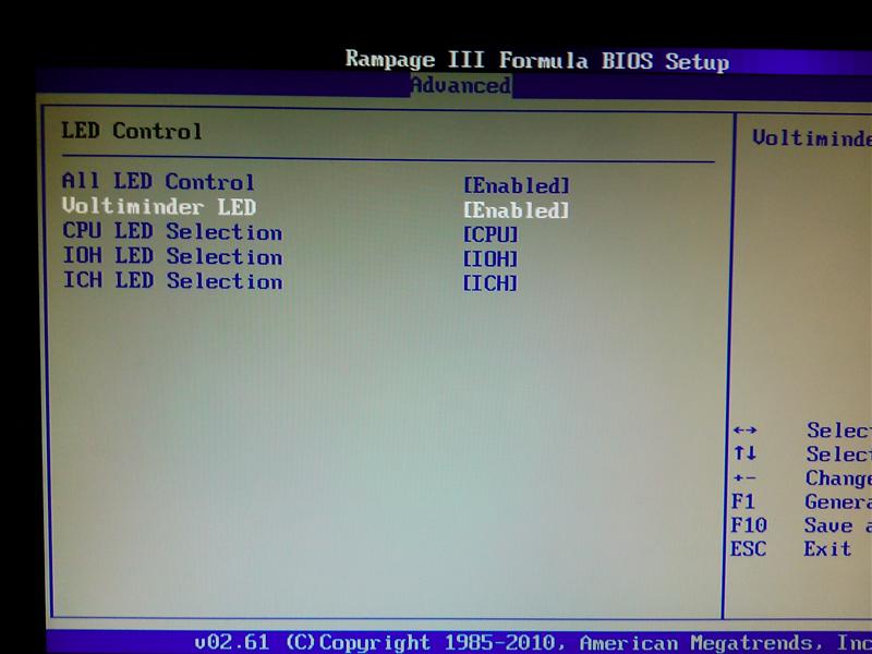 In questa sezione troviamo alcuni parametri avanzati per il controllo della cpu Intel, infatti è possibile impostare oltre al moltiplicatore, anche la disattivazione e l'attivazione di tutte le tecnologie di risparmio energetico come C1E, Speed Step, C-state ma anche l'attivazione o meno del Turbo Mode, l'attivazione o la disattivazione della tecnologia Hyper Threading che permette di far vedere al sistema operativo un numero di core logici doppio rispetto a quello dei core fisici. Troviamo inoltre i controlli per tutte le periferiche on-board della scheda madre, come i controller Audio, LAN, 1394, USB 3.0 e Sata III (6GB/s). Troviamo inoltre il totale controllo dei LED presenti nella scheda madre e la disattivazione o meno dei punti di misurazione dei voltaggi Led. Troviamo infine i parametri per iROG.