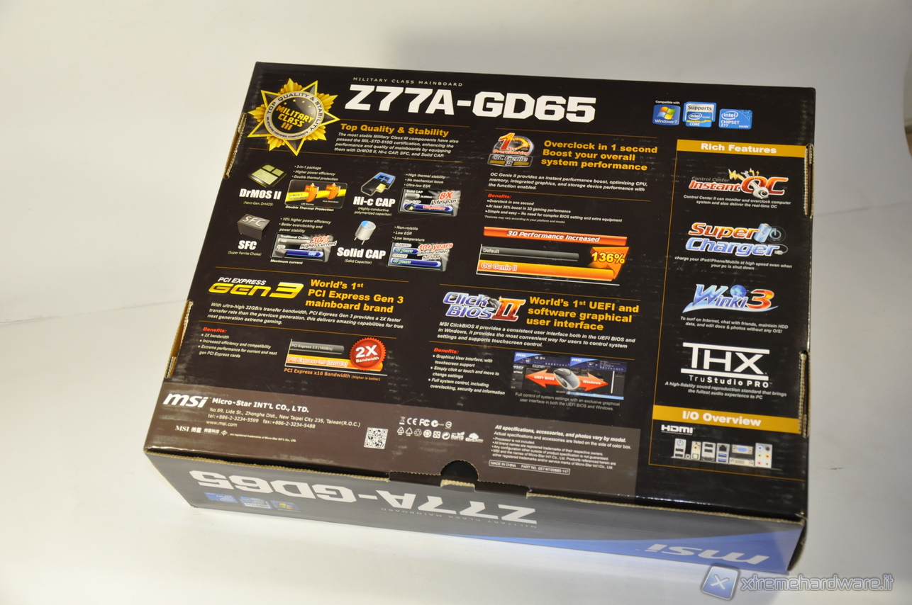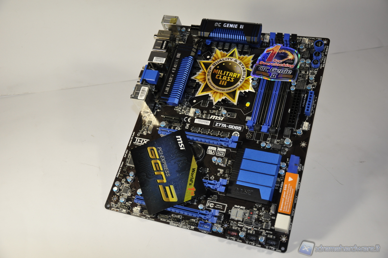 Il layout della Z77A-GD65 è risaltato dagli adesivi che riportano le 3 feature principali, oltre che dai colori blu elettrico e nero. Priva di elementi vistosi o sgargianti ma attenta ai dettagli e curata nel design, la Z77A-GD65 risulta senza dubbio gradevole esteticamente, cosa a cui molti utenti non sanno rinunciare.