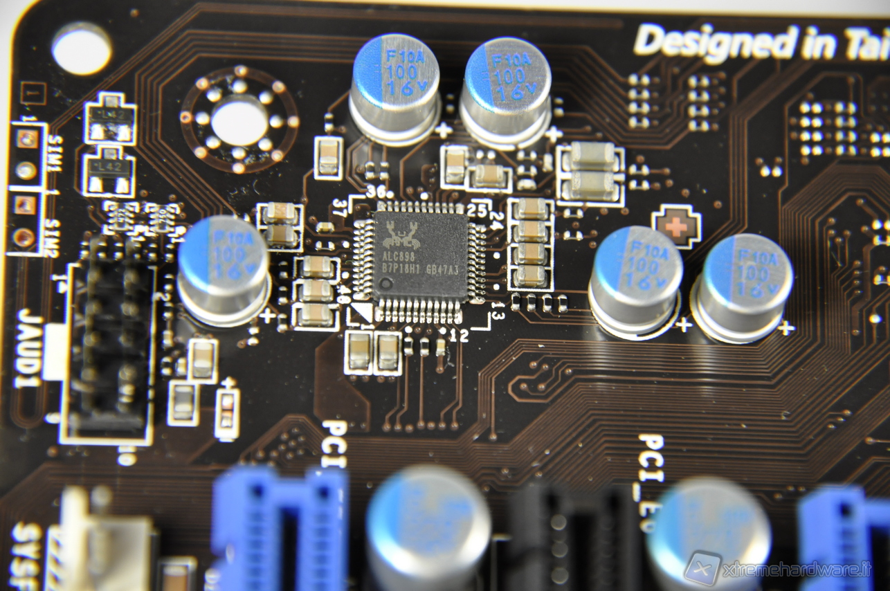 Nella macro il chip Realtek ALC898 che permette di realizzare un sistema ad 8 canali (7.1) in alta fedeltà e conforme alle specifiche Azalia 1.0.