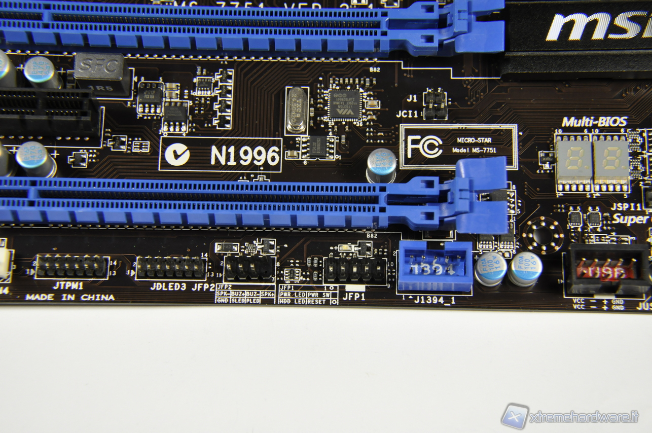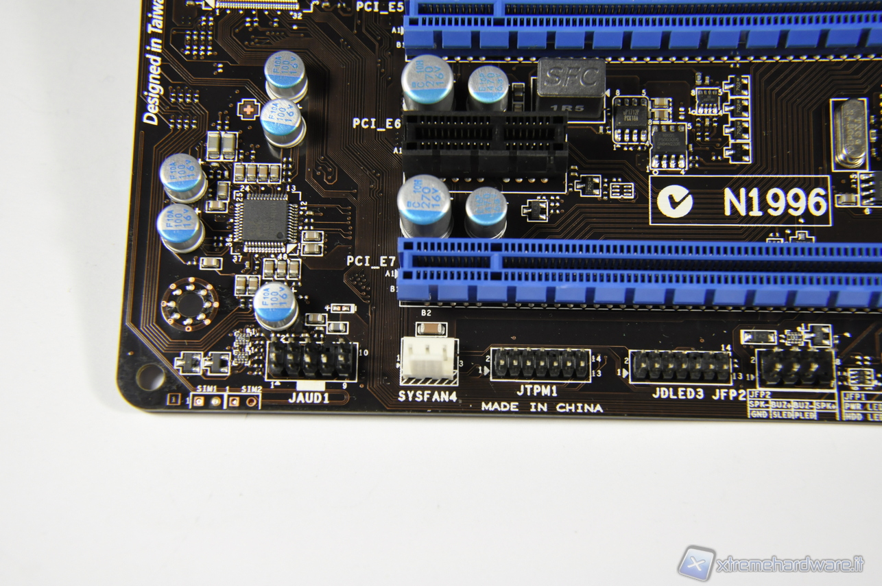 In primo piano distinguiamo il chip Fintek F71889AD dedicato alle funzioni di monitoring.